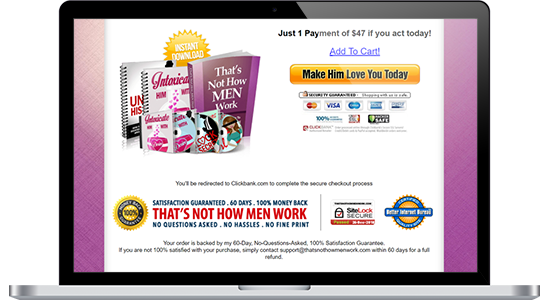 All 'That's Not How Men Work' sales are processed using Clickbank.